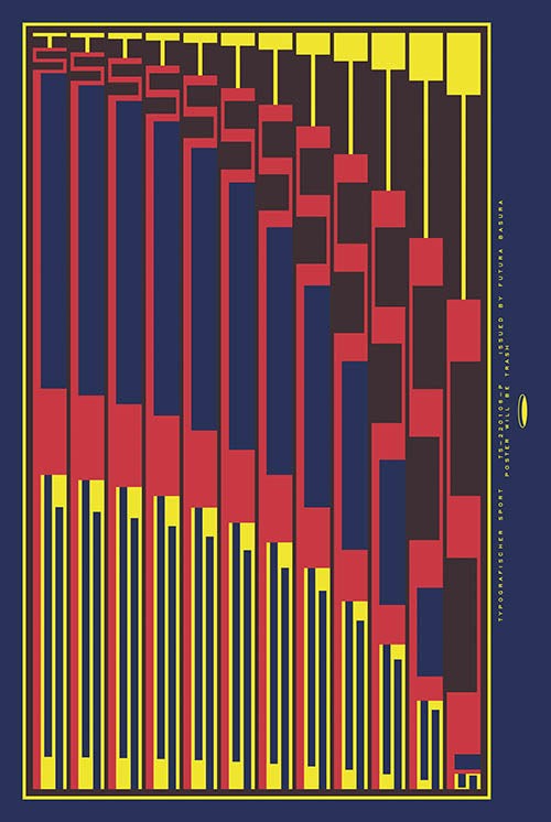 Hans Sutter (Basel, 1988) signs this project that emerged as a continuation of a teaching work, in which he visually explored typographical aberrations and their relationship with elite sport. Clearly influenced by the pressure he received as a child to become a professional tennis player, in his work as a visual artist he is constantly searching for, and reflecting on conflicts between pleasure and discipline, free time and work. He finished studying architecture at the ETH in Zurich and is currently working in a studio, developing graphic representation tasks as a designer and video editor. Passionate about architecture (although he does not practice architecture) and photography, he has just set up a small silk-screen printing workshop with his girlfriend in Strasbourg from where they experiment with Typografischer Sport and for other projects.
