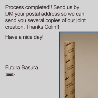 The works exhibited or marketed on our website are protected by copyright which are managed by Futura Basura with its collaborating artists. For the reproduction, distribution and/or transformation of these pieces, it is necessary to obtain the authorisation of the author of the work or the manager of their rights. Futura Basura is not responsible for the use or manipulation by third parties of these works and images, nor for possible claims by third parties against the artists who participate here.