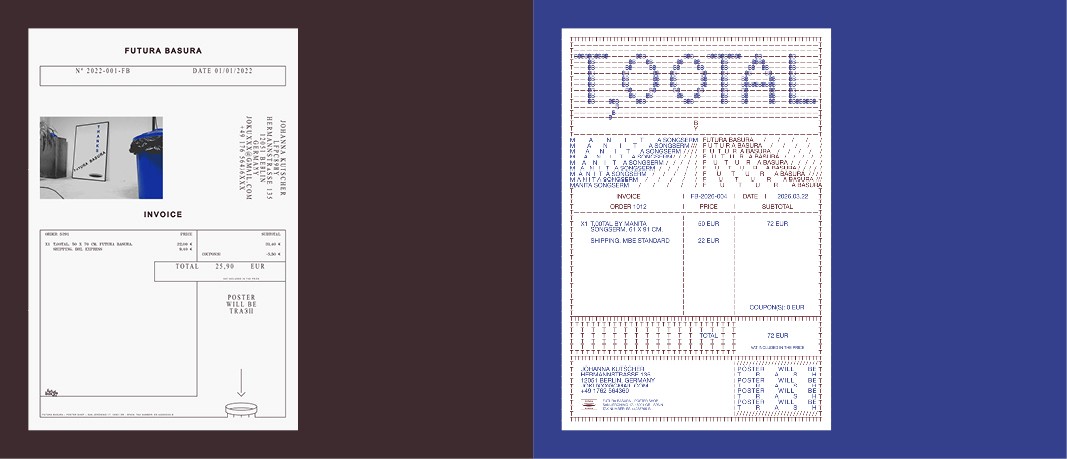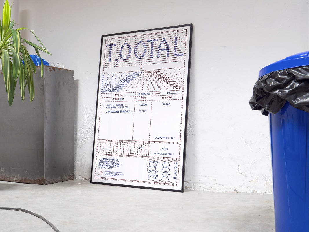 T,00TAL is built around a variable design. Each poster is generated at the moment of purchase, making every piece unique and personalised — no two are ever the same, just like no two invoices are alike. When you buy it, what you receive is the actual invoice of your order in poster format.