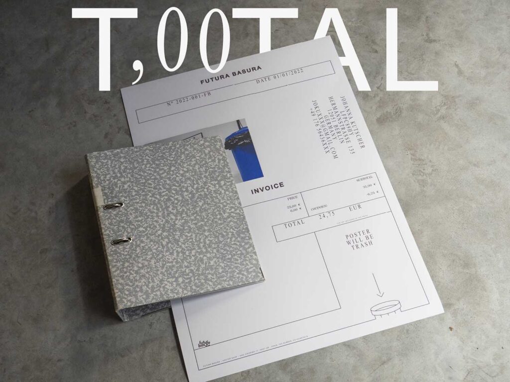 One of the aims of contemporary graphic design is to provide flexible solutions that meet the needs of variability in the multiplatform and personalised environment that currently surrounds us. Graphic designers face this problem every day. This idea is to create a poster concept by applying these 💡 thinking mechanisms ⚙️ When a person buys anything at Futura Basura shop, an A4 invoice with all the information about the purchase is included 🧾 Just like any other shop in the world. By buying T,00TAL, though, together with its A4 invoice you will get the very invoice design in poster format.