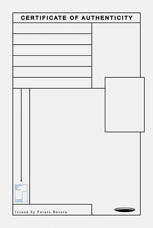 The works exhibited or marketed on our website are protected by copyright which are managed by Futura Basura with its collaborating artists. For the reproduction, distribution and/or transformation of these pieces, it is necessary to obtain the authorisation of the author of the work or the manager of their rights. Futura Basura is not responsible for the use or manipulation by third parties of these works and images, nor for possible claims by third parties against the artists who participate here.