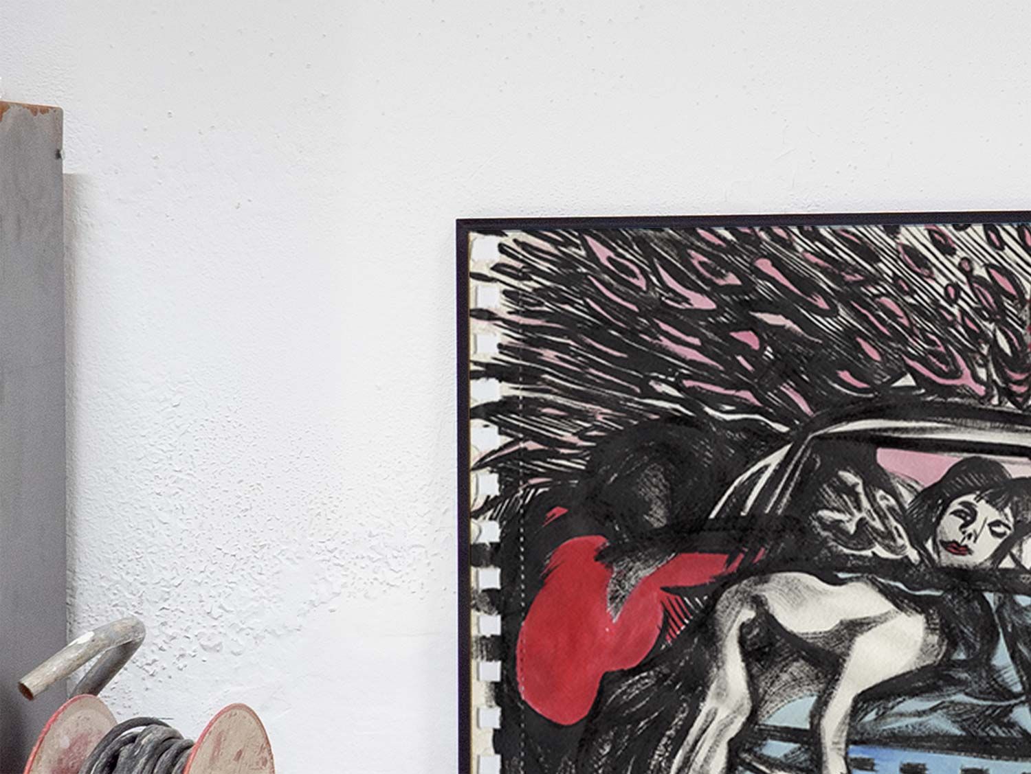 Marta Beltrán’s sketchbook contained this drawing with her unmistakable signature. The fatality and chaos of an accident unfold in another cinematic scene full of tension and intensity.
