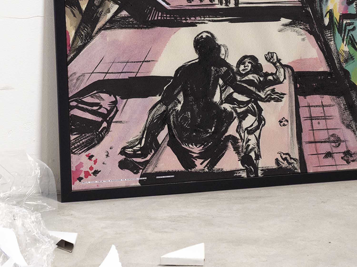 This drawing by Marta is very special to us. The line, compositional strength and masterful use of colour make it one of our favourites. Both unsettling and magical, this evocative cinematic frame has been published in a limited edition of 30 copies in 70 × 50 cm format.