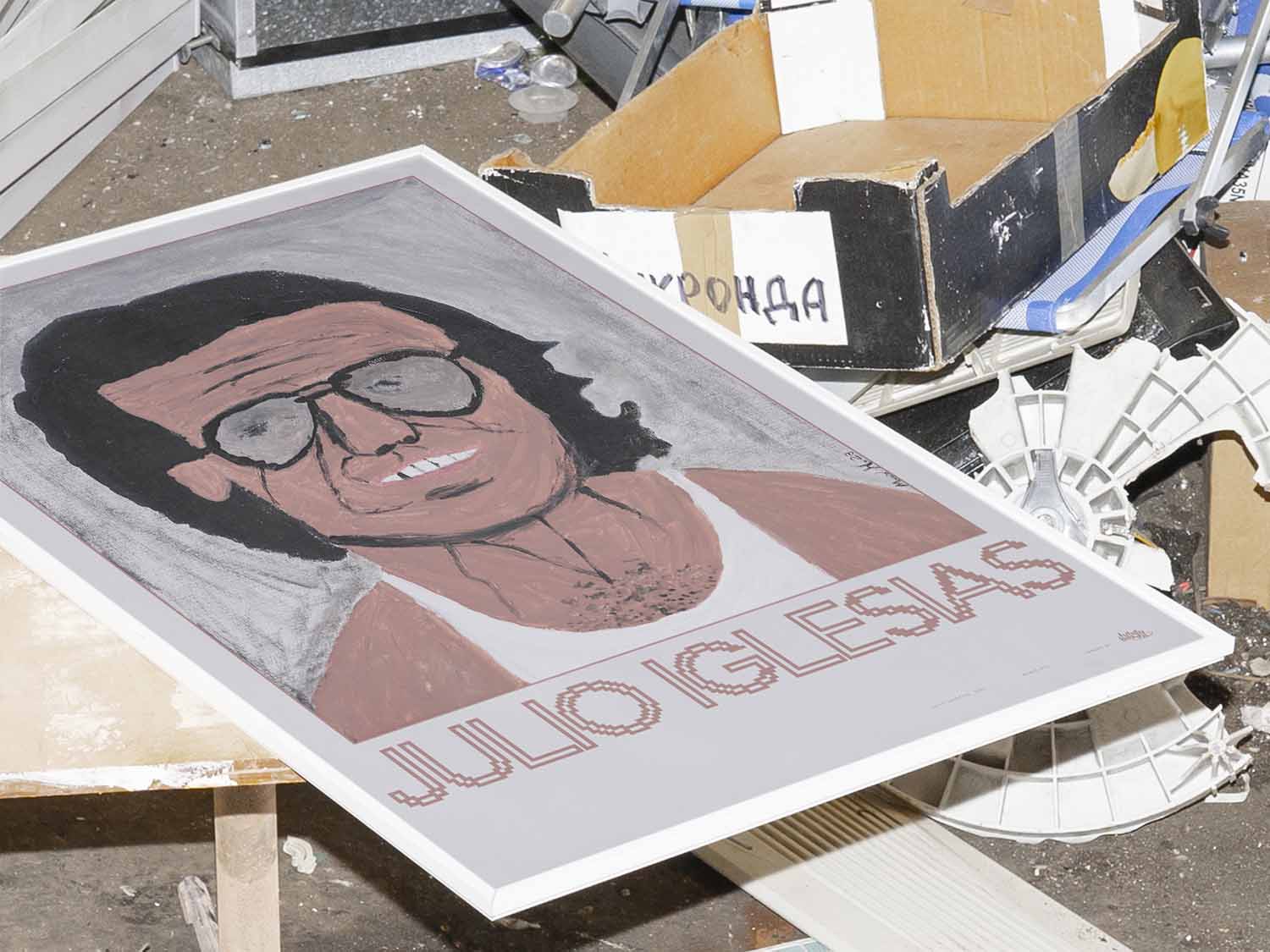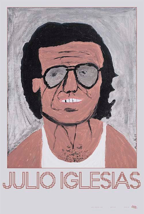 The first piece by Mario HT3 as a new artist at Futura Basura. His fascinating work simply had to be part of this project. If you're ready to spend hours in awe, check out his Instagram account. The selection wasn’t easy — we were looking for truly universal, globally recognized figures. Based on his work, we designed the poster using Terminal Grotesque by Velvetyne. Acrylic portrait of Julio Iglesias. The singer appears somewhat faded, very dark, and wearing his iconic white tank top, in a casual and caricatured image. Premium Matte 180 gr., white. Inkjet printing with mineral pigments. Frame not included.