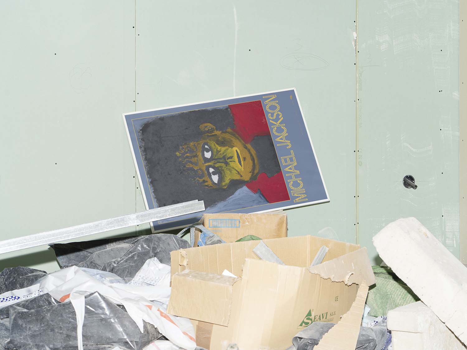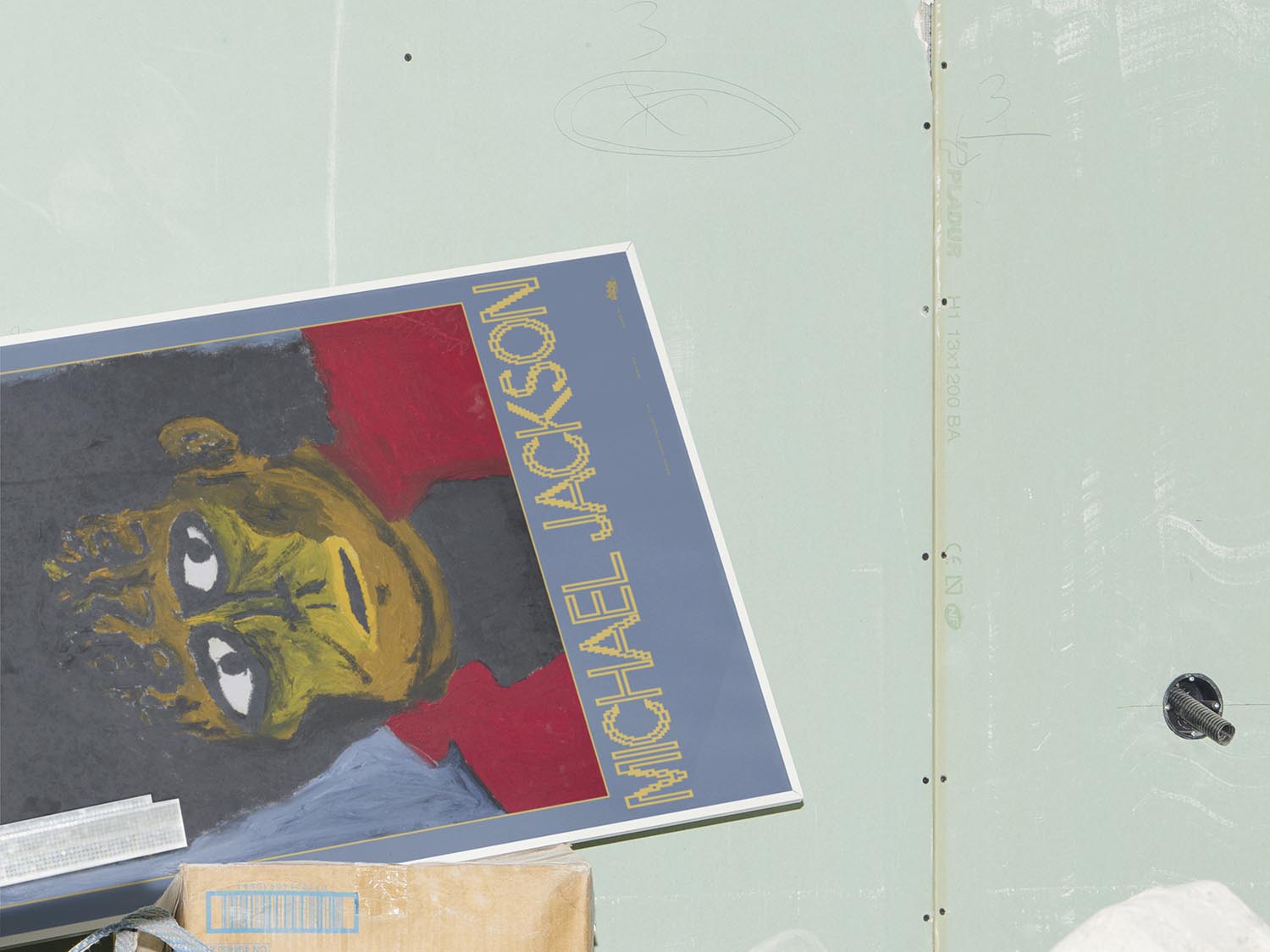 Acrylic portrait of Michael Jackson in “Thriller”, the real pop zombie of the 80's, represented in a more putrefying way if possible.