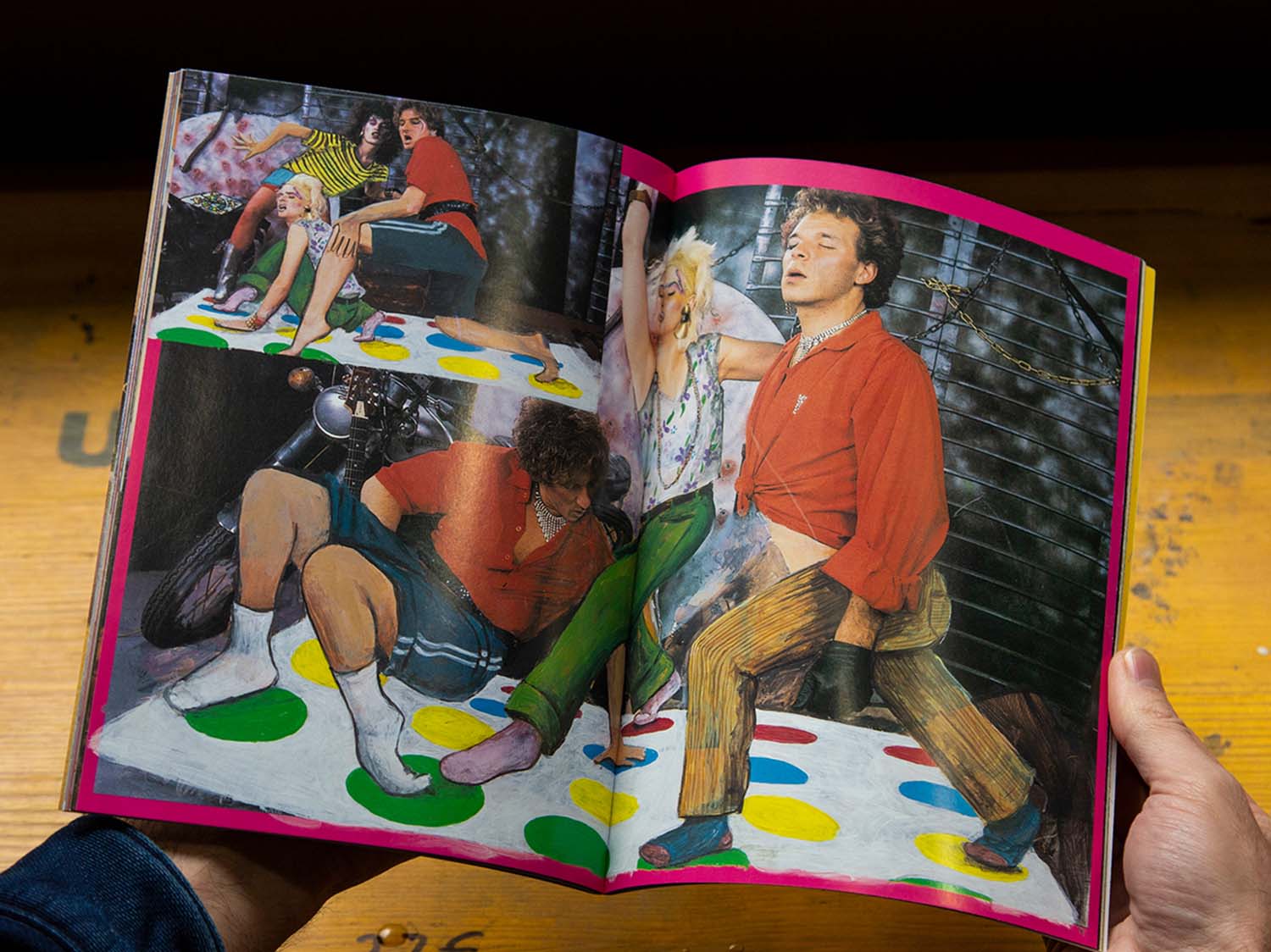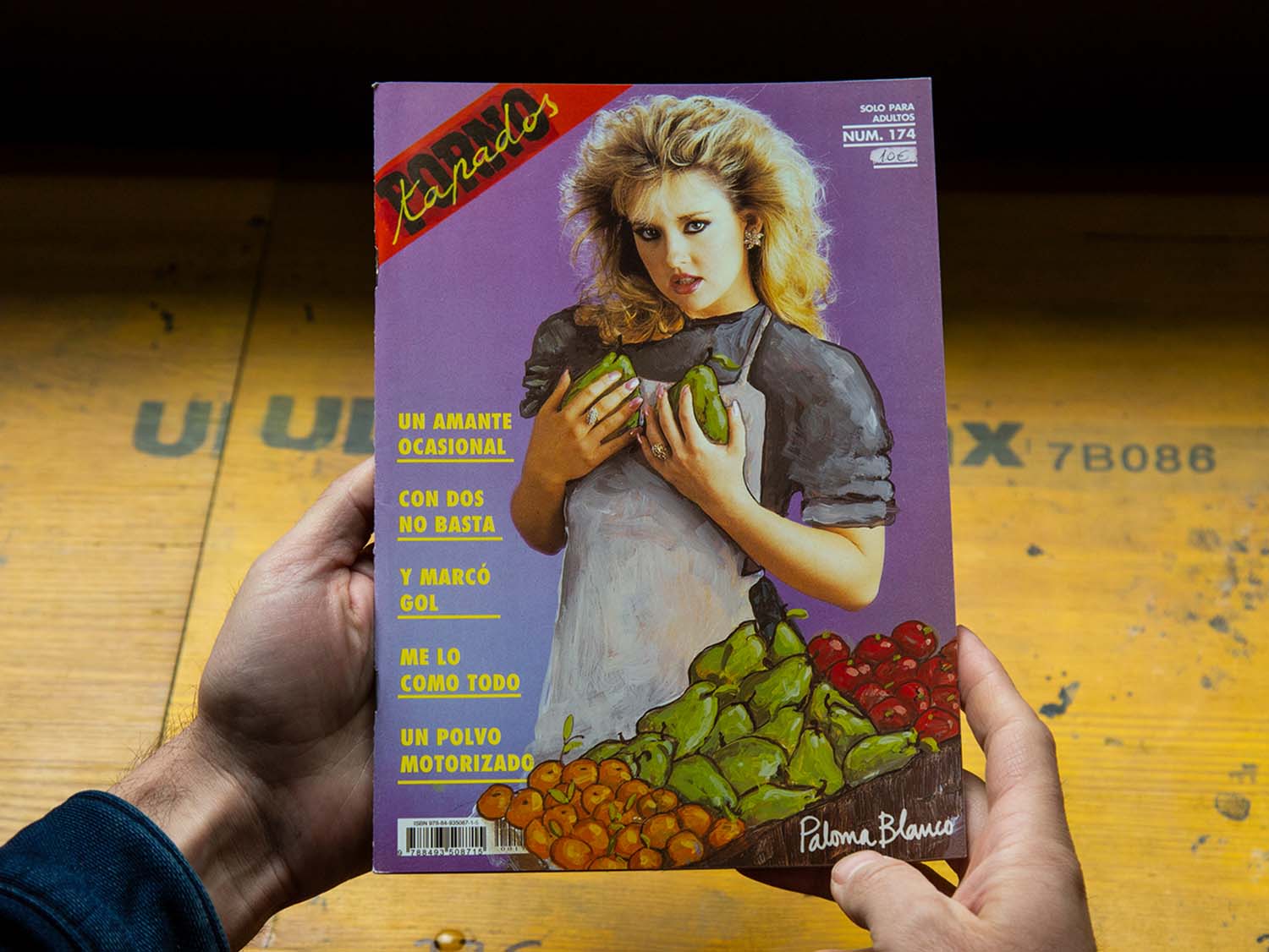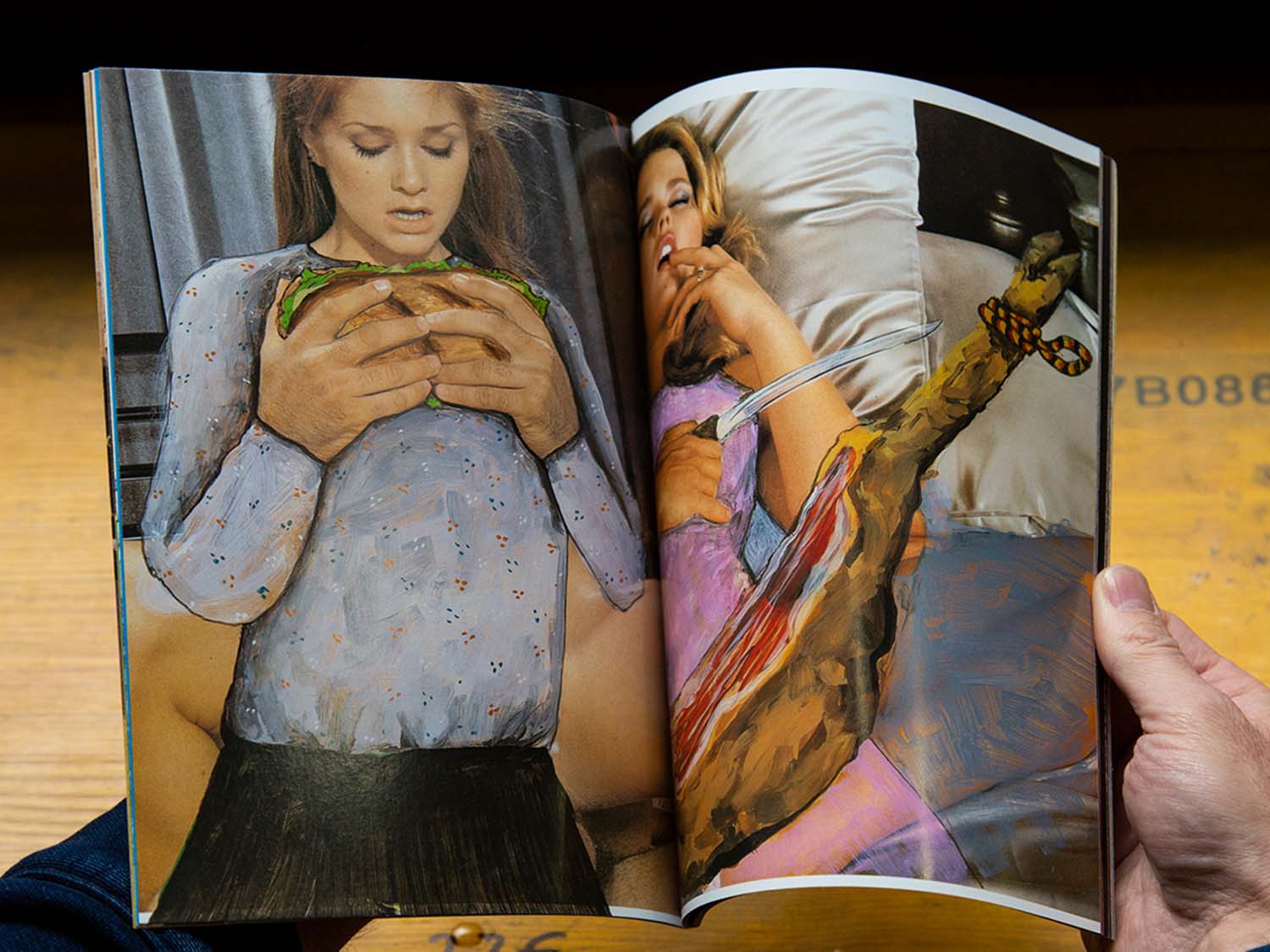 The artist Paloma Blanco has painted over images from pornographic magazines, changing sexual situations into every-day scenes, such as cooking, eating, watching TV, singing, dancing, doing sports, etc. The protagonists’ facial expressions remain unchanged, as are accompanying texts. Issued by Belleza Infinita.