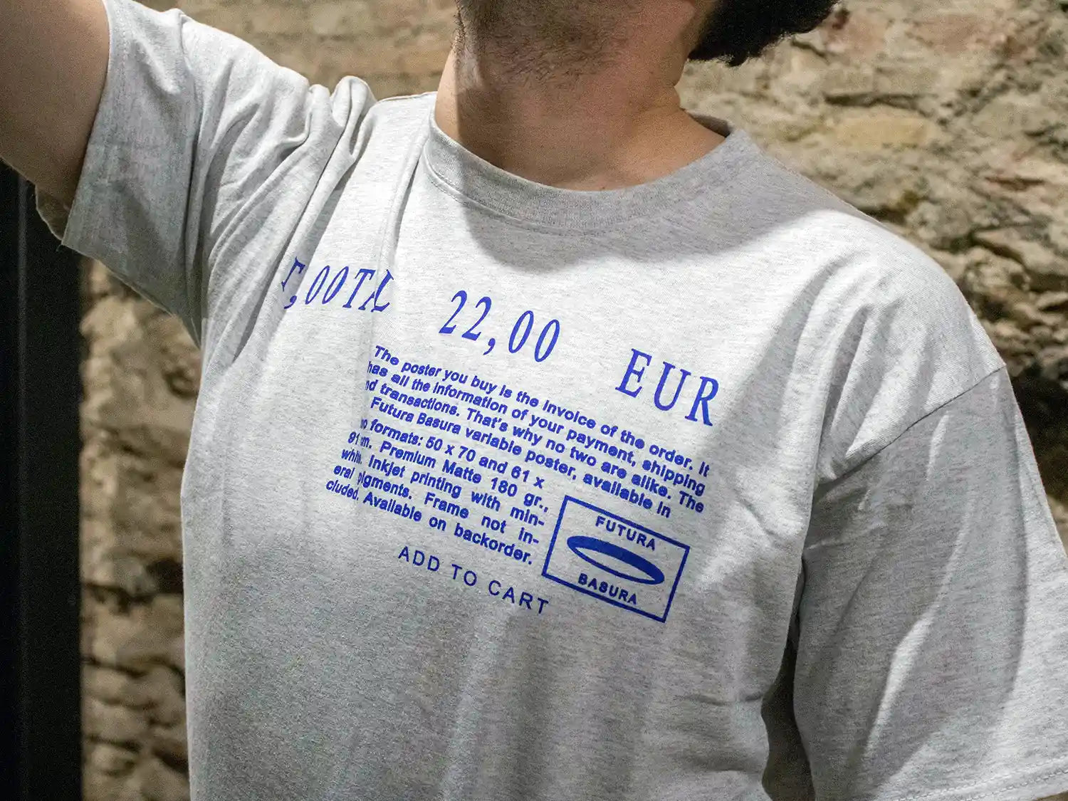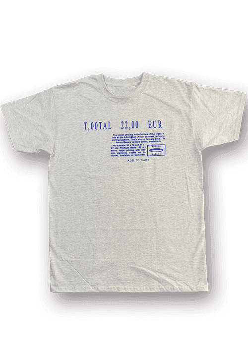 Screen printed T-shirts. 100% cotton. Fruit of the Loom Super Premium 205 g/m3. Available sizes: S, M, L, XL, XXL. An original Futura Basura design only available at Futura Basura Poster Room and futurabasura.com.