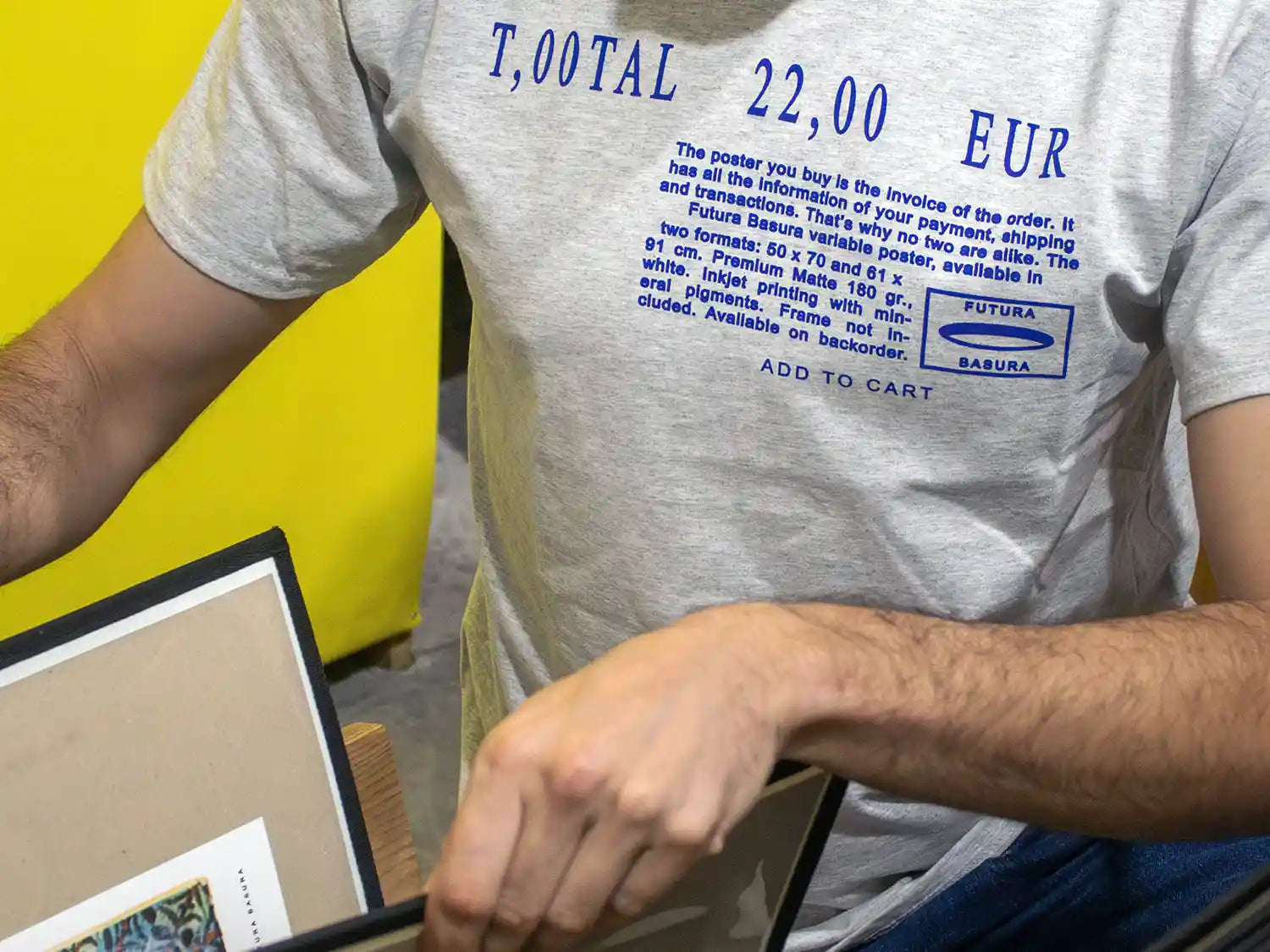 The works exhibited or marketed on our website are protected by copyright which are managed by Futura Basura with its collaborating artists. For the reproduction, distribution and/or transformation of these pieces, it is necessary to obtain the authorisation of the author of the work or the manager of their rights. Futura Basura is not responsible for the use or manipulation by third parties of these works and images, nor for possible claims by third parties against the artists who participate here.