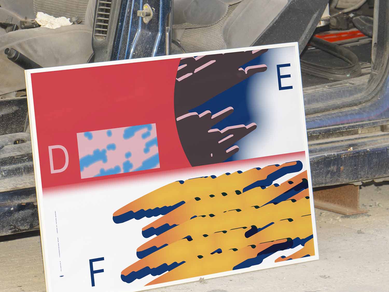 TS's works are built on a typographic base, which ends up losing its form after being subjected to various transforming forces. It is something like "sports typography" where the rules of elite sports are applied to visual design, pushing typography to its limits and exploring new creative possibilities. In this piece, as well as in TS-240731-P, we can see a chromatic evolution compared to previous works. Available in two sizes: 50 x 70 cm and 61 x 91 cm.